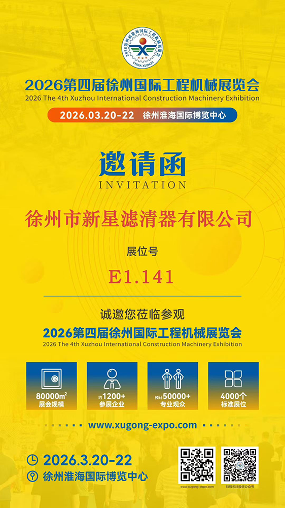 С приходом весеннего тепла мы с нетерпением ждем встречи с вами в Пэнчэне (г. Сюйчжоу). Компания Xuzhou Xinxing Filter Co., Ltd. — специализированный производитель, имеющий глубокие корни в сфере систем фильтрации, — готовится принять участие в одном из главных отраслевых событий 2026 года. Мы с огромным удовольствием приглашаем вас посетить 4-ю Сюйчжоускую международную выставку строительной техники, которая пройдет с 20 по 22 марта 2026 года в Международном выставочном центре «Сюйчжоу Хуайхай» (Xuzhou Huaihai International Expo Center).